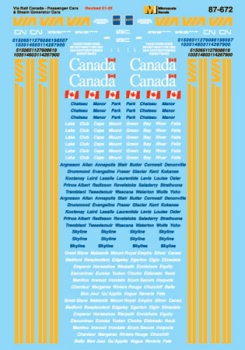 Description: Via Rail Canada Passenger Cars (1978-2002) use with 87-673 - Waterslide Decal - HO Scale