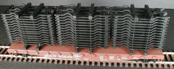 This auto frame kit comes with enough frames to load a 40 Ft flat car, 50 Ft flat car or 50 Ft gondola. Two kits are needed for an 89 Ft flat car-.