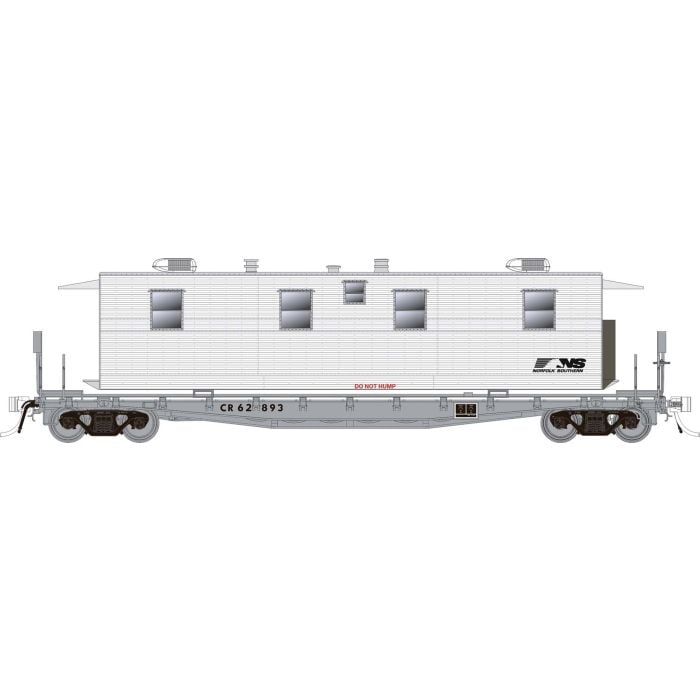 Rapido 138105-6 - HO F30A 50' Flat Car w/Camp Van: NS - MOW Sleeper #62956