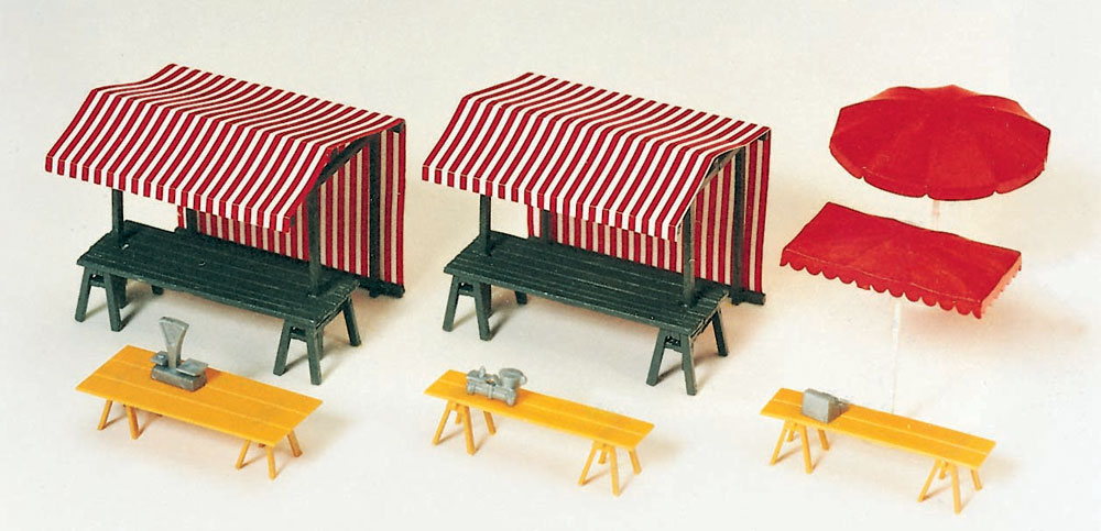 Preiser 17500 - HO Outside Market Stalls (2) w/Accessories (Kit)