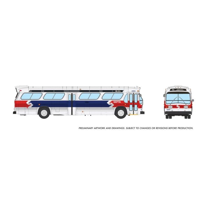 HO 1/87 New Look Bus (Deluxe) - Philadelphia SEPTA - Late #4328 The Rapido Trains HO scale New Look Bus models features: -Correct tubular profile traced from a 3D-scan of a real New Look Bus. -Era-correct rear engine door available in early (2nd generation) or late (4th generation) styles. -Optional left-side emergency exit door and either single- or dual-stream rear doors -Full interior including separate bench seats and grooved flooring. -Etched-metal interior stanchions, stamped-metal handrails and separate farebox and steering wheel parts installed. -Steerable front wheels and REAL rubber tires. -Three types of bumpers − steel, water and rubber. -A wide variety of optional detail parts included. -Separate advertisement frames included with each model. -Pre-installed route destination signs for added realism. -Working interior lights, headlights and tail lights. -Installed as appropriate A 9-12 volt DC power supply (not included) is required to power the lighting features.
