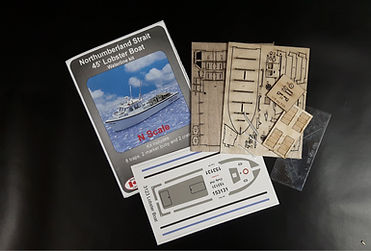 This style of lobster boat is a common sight around the north part of the Canadian Maritimes and the Northumberland Strait. Kit includes: 8 traps, 2 crates and 2 buoy.